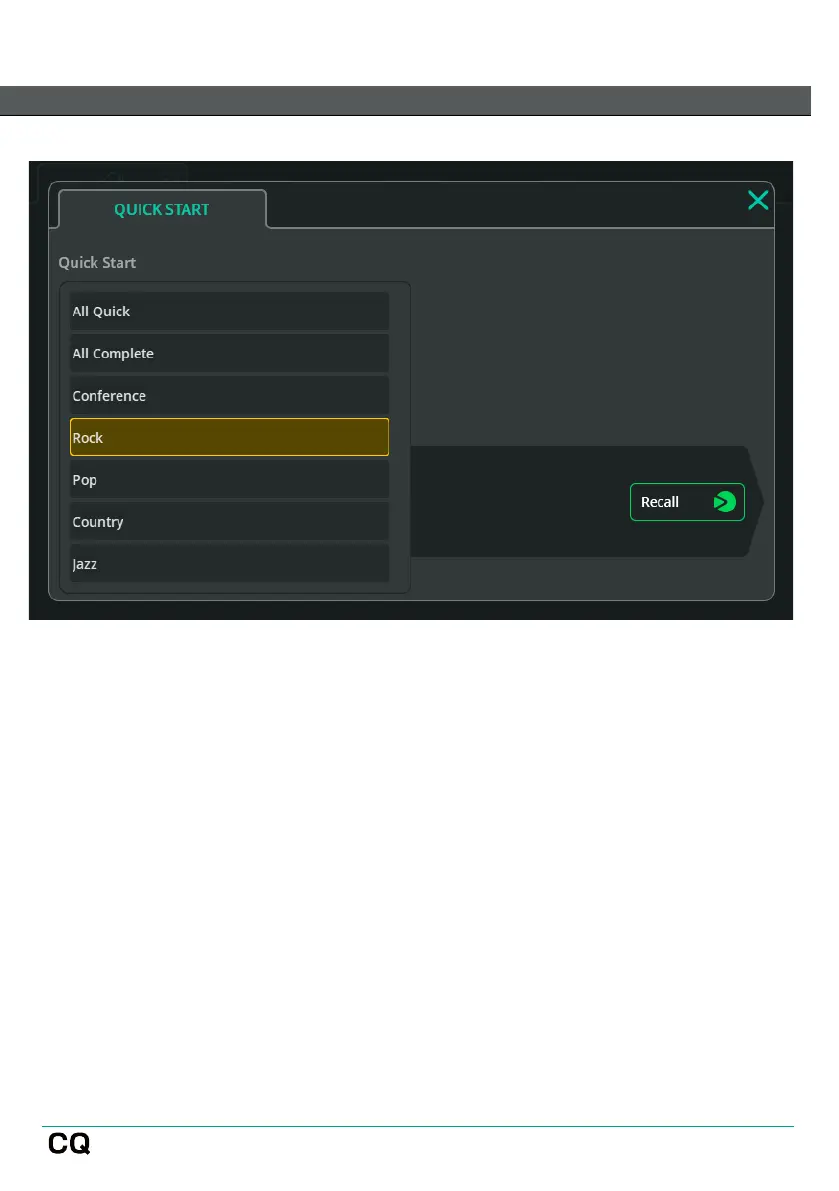 Recalling a Quick Start template will set all CONFIG, PROCESSING and FX screen