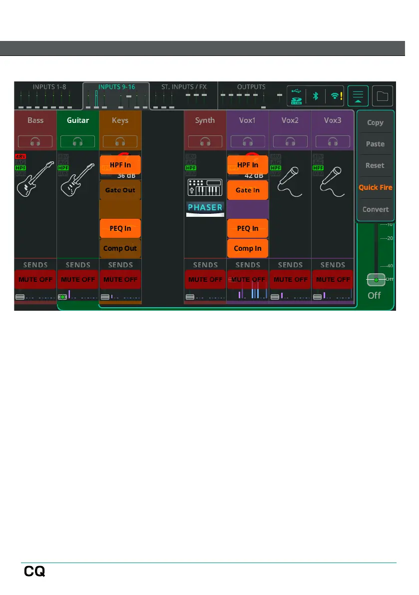 Quick Fire also allows channels to be muted from within the PROCESSING screen.