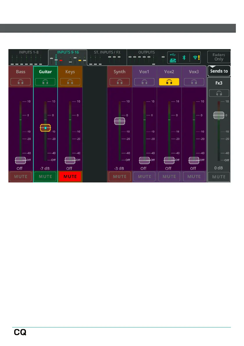 indicate that fader positions are showing the ‘Sends to’ an FX Unit.