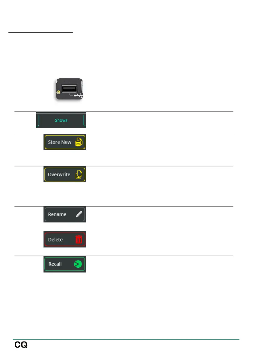 Show files can only be stored and recalled from/to a connected USB-A storage