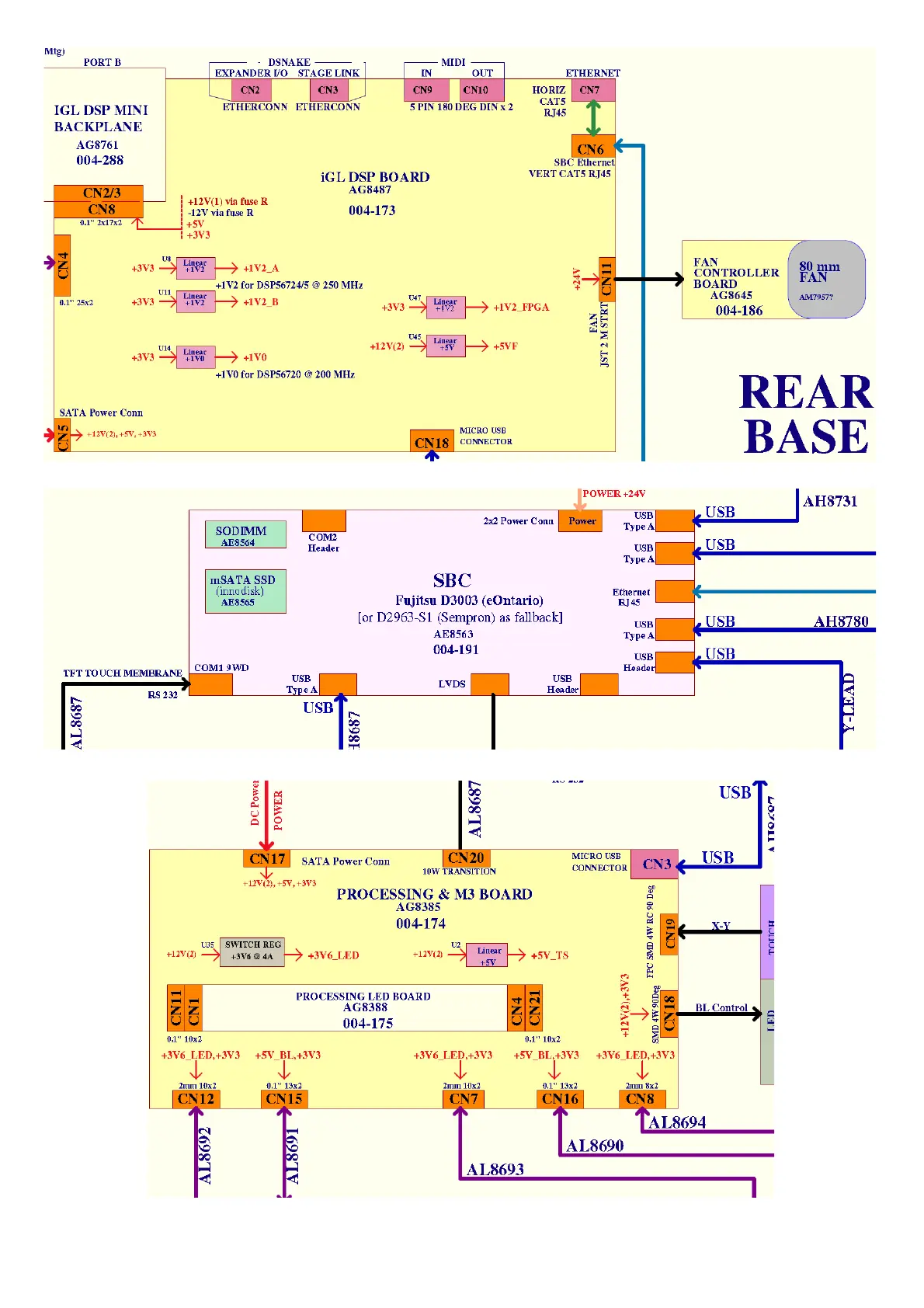 ALLEN & HEATH GLD-080 - Internal Board Connections; IGL DSP MINI BACKPLANE; IGL DSP BOARD; FAN CONTROLLER BOARD