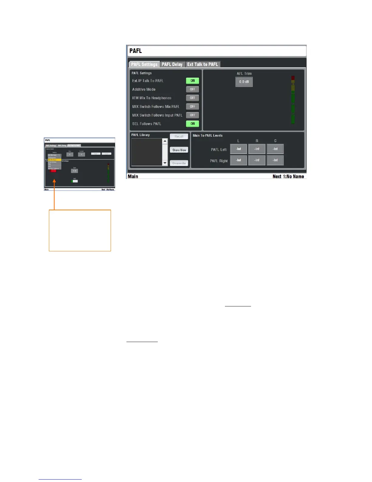 talkback into the PAFL monitor. Open the Ext Talk to PAFL page to assign