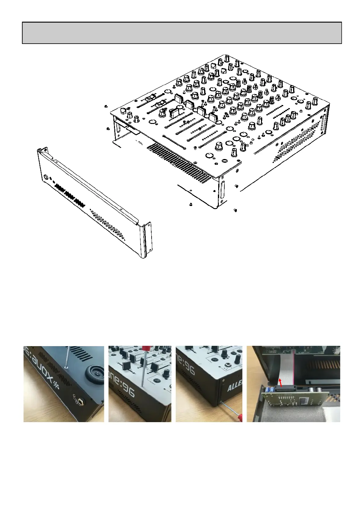 • Turn the mixer over. Remove and retain 6 Torx screws securing the front panel to the top and chassis [2].