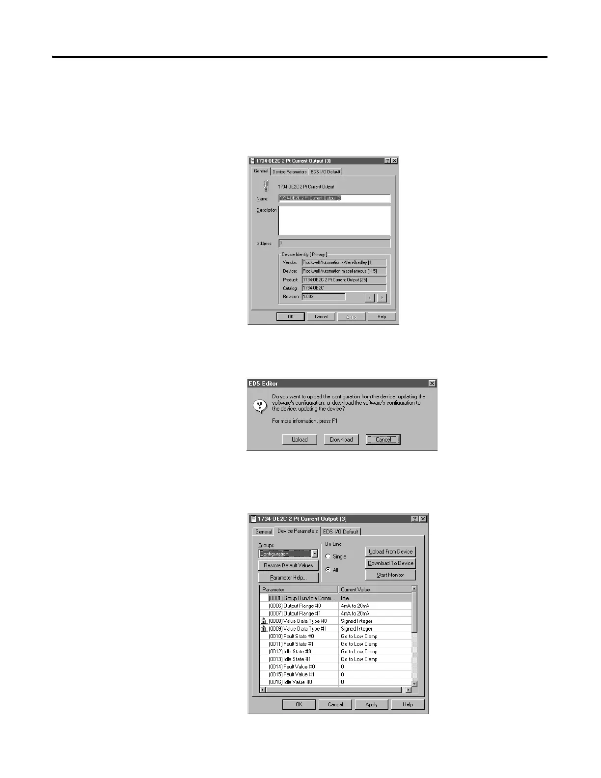 3. From the EDS Editor dialog, click Upload to upload existing parameters
