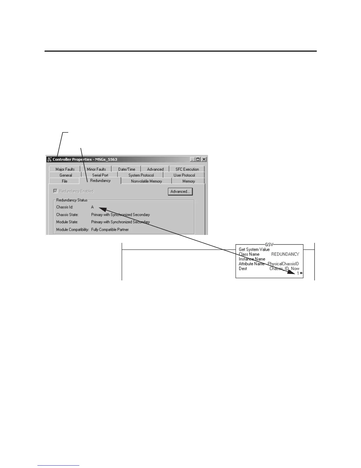Use the Redundancy tab of the Controller Properties window to check
