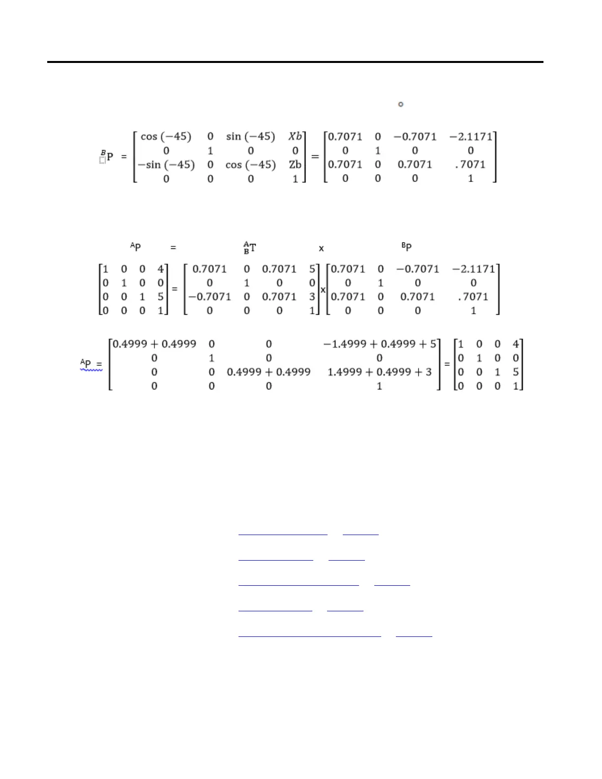 and rotation matrix of -45 rotation.