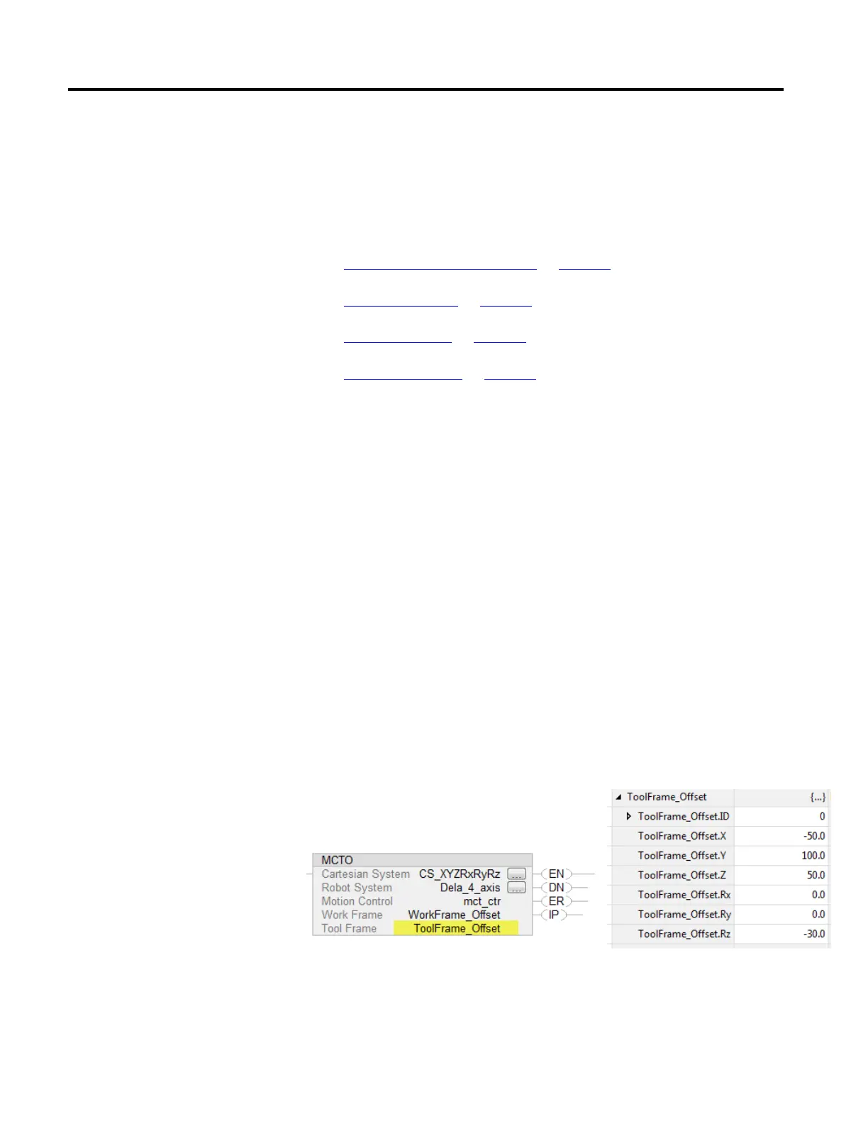 This image shows the Tool Frame offset configuration in the MCTO instruction