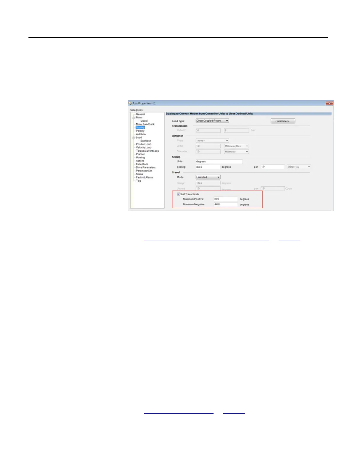 axes. These limits are set as a Soft Travel Limit on the Scaling tab in the Axis