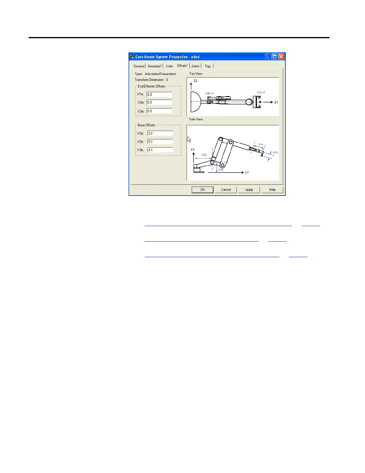 tab in the Coordinate System Properties dialog box. The End-Effector Offsets