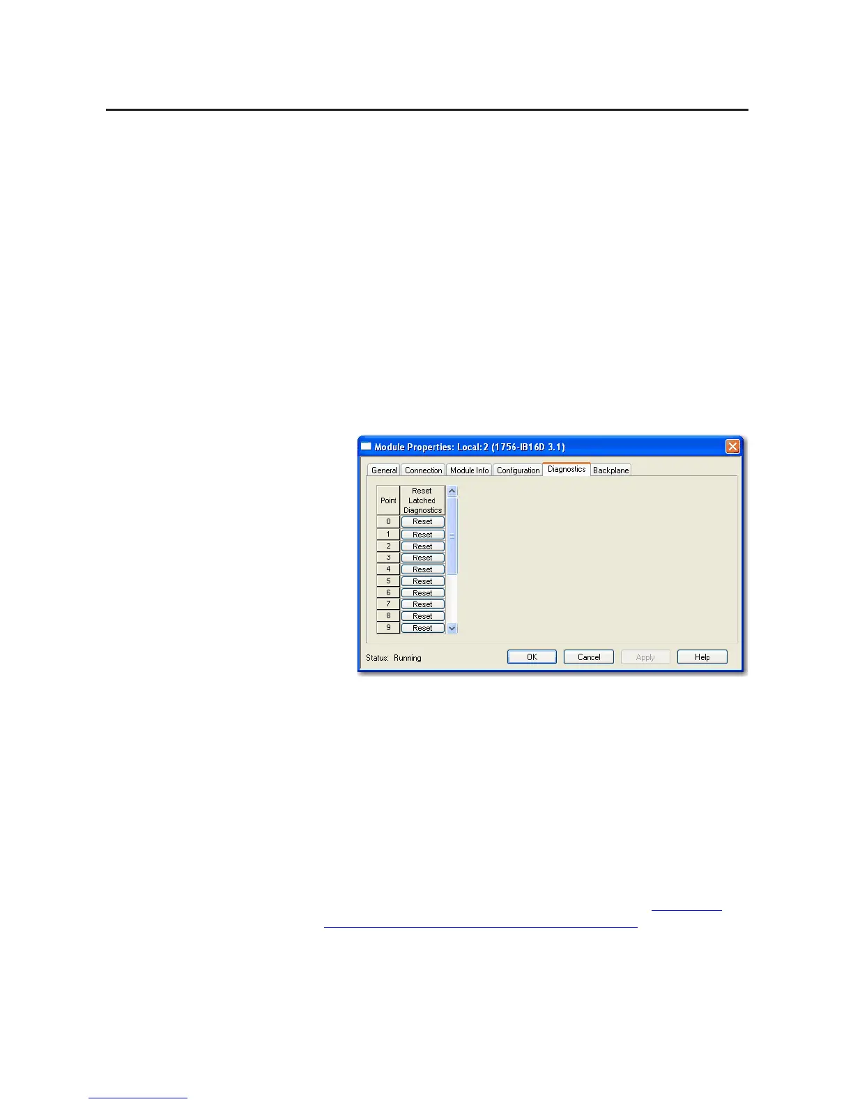 1. On the Modules Properties screen, click the Diagnostics tab.