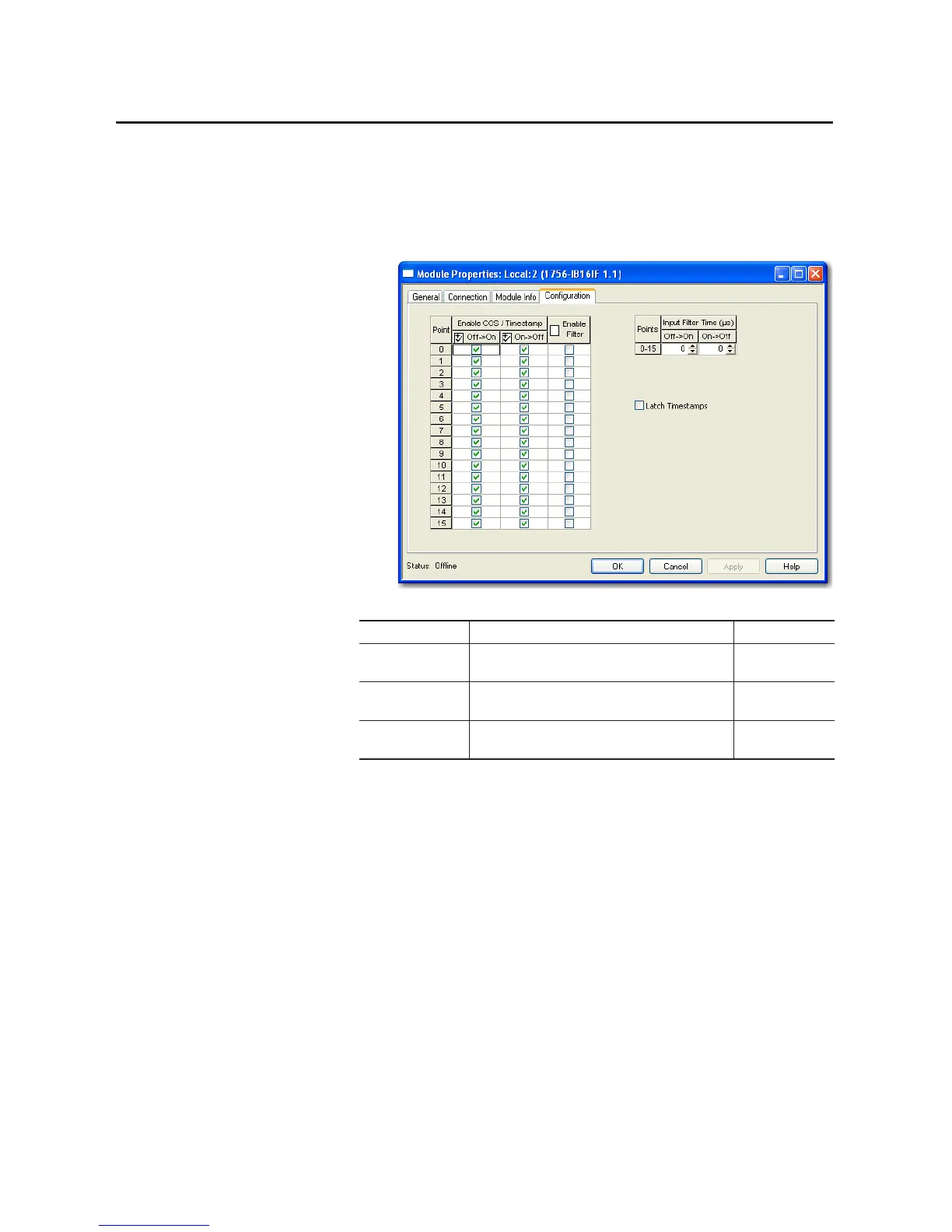 2. In the Input Filter Time column, enter Off to On and On to Off input