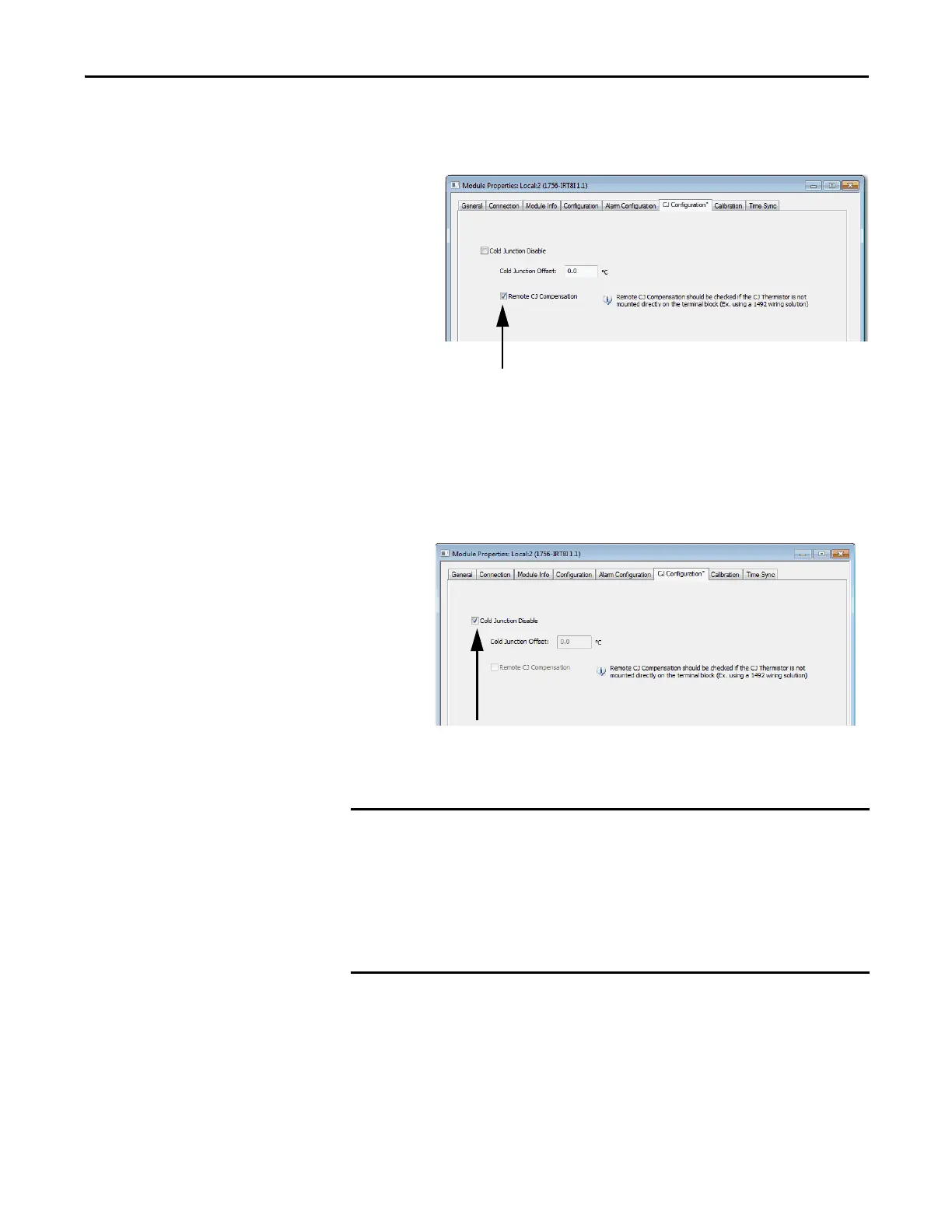 • The Cold Junction Disable box on the Module Properties Configuration tab