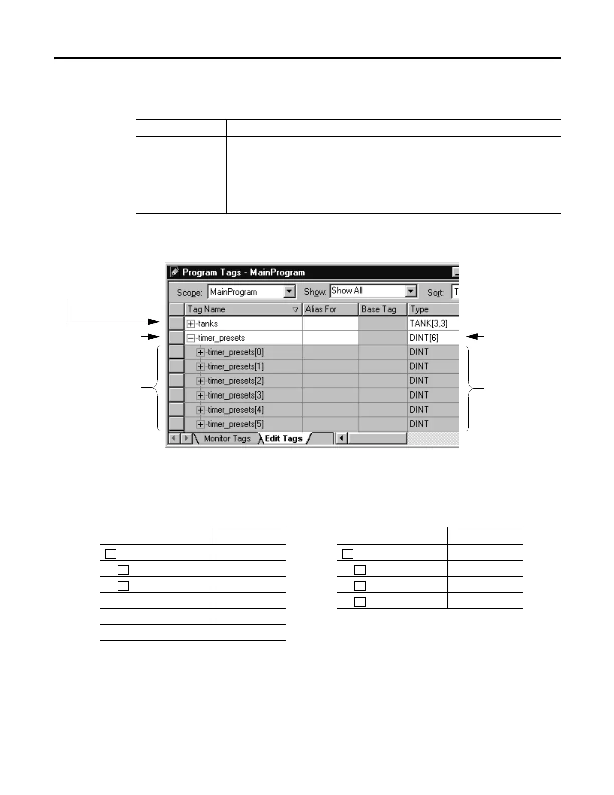 ·An array tag occupies a contiguous block of memory in the controller, each element in sequence.