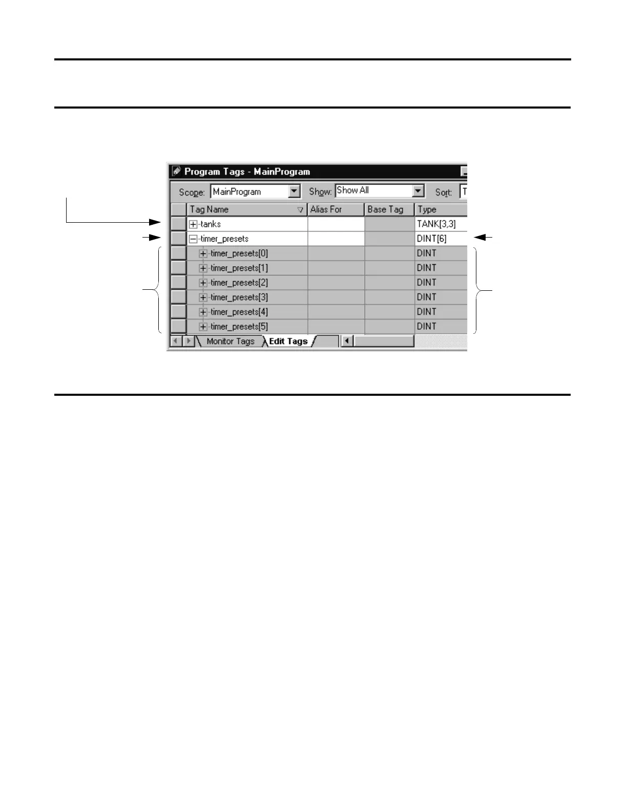 a different preset value. Because all the values are the same data type (DINTs) an array is used.