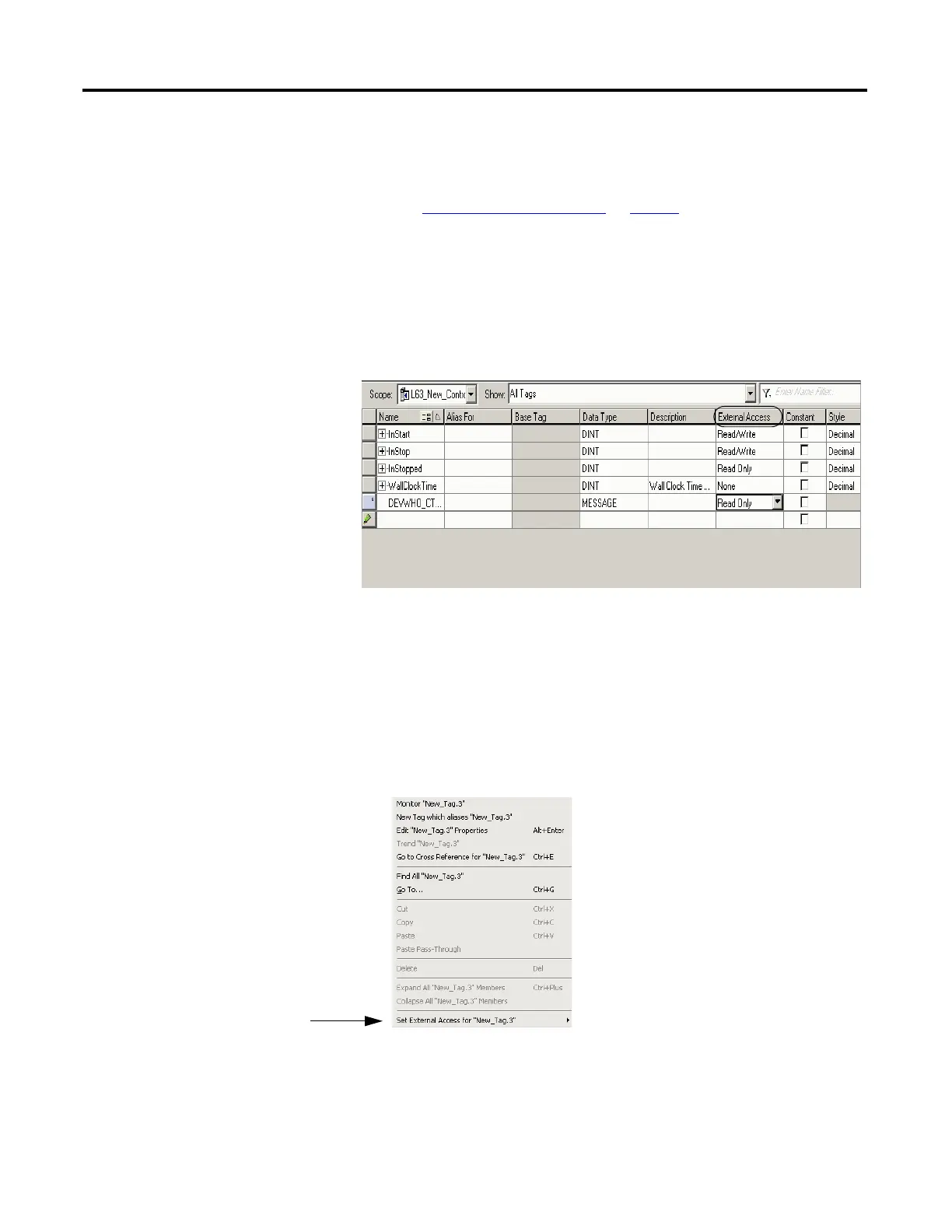 External Access column displays the tag as ‘Read/Write’, ‘Read Only’, or ‘None’.