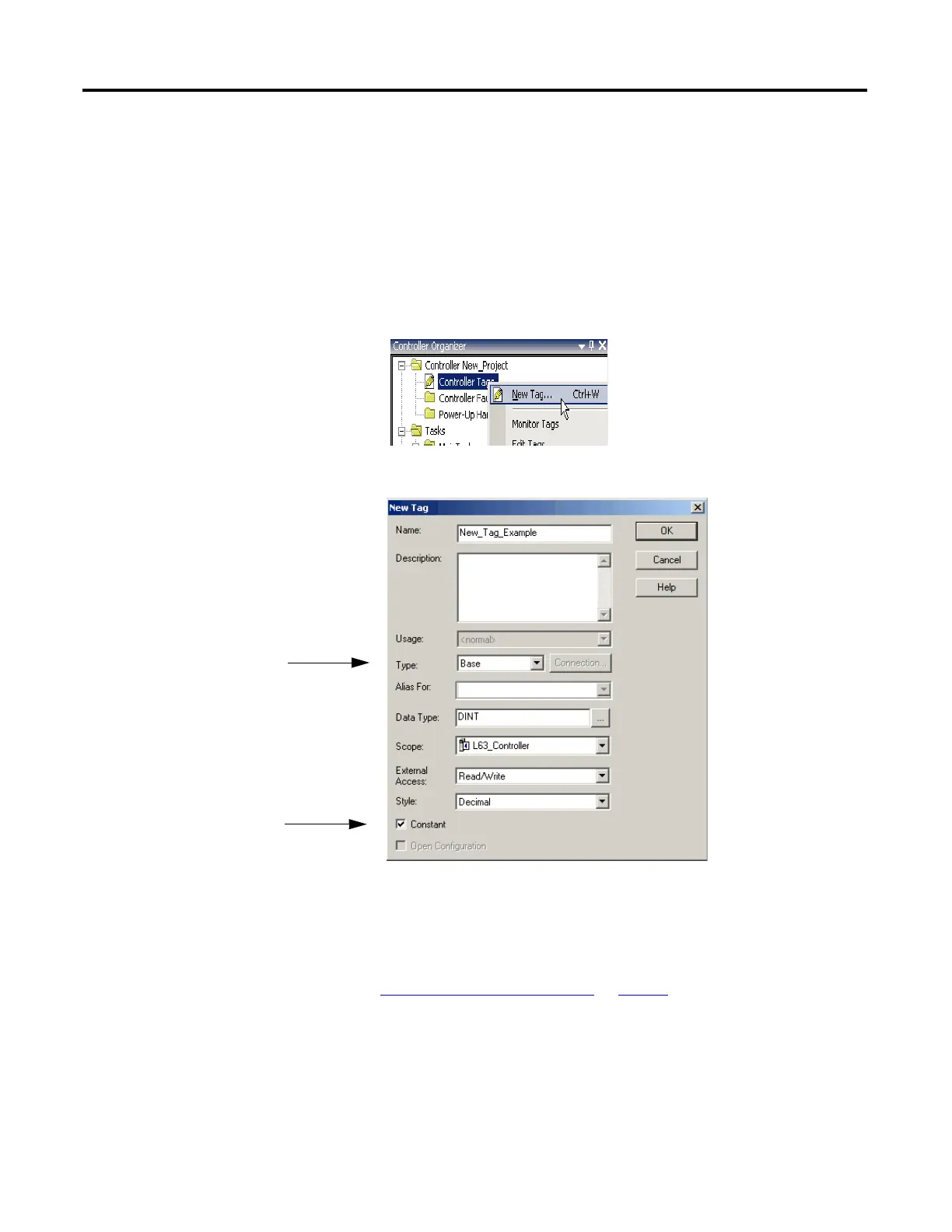 Follow these steps to configure a tag as a constant on the New Tag dialog box.