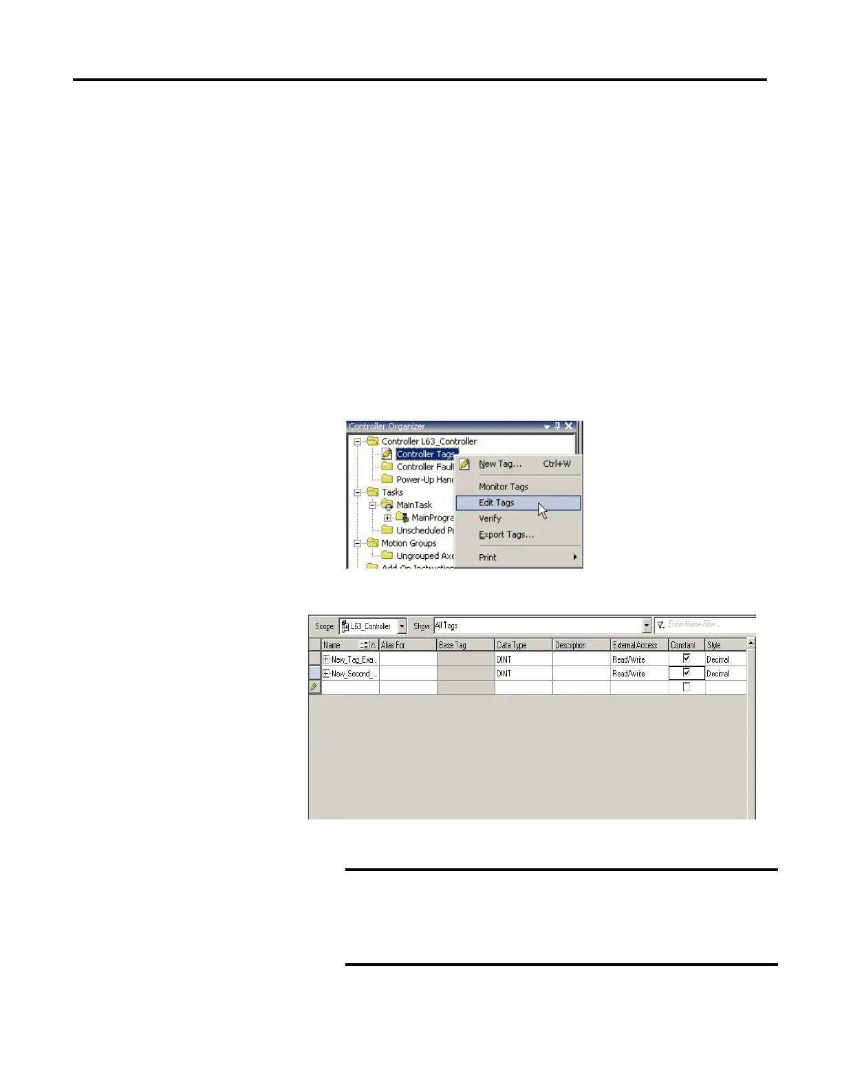 1. On the Controller Organizer, right-click Controller Tags and choose Edit