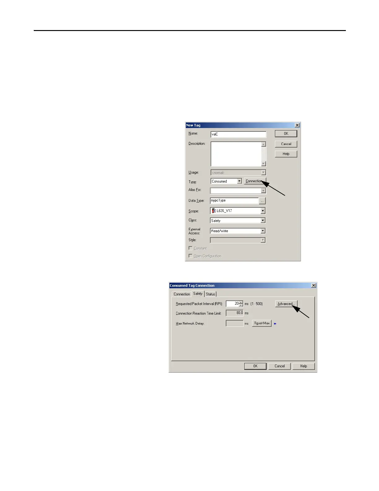 To view or configure safety tag connection data, follow these steps.