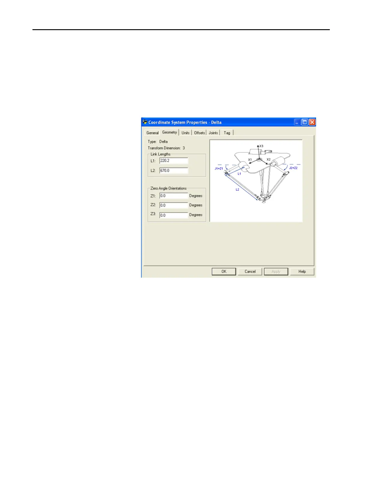 Figure 23 - Three-dimensional Delta Robot - Link Lengths Configuration Screen