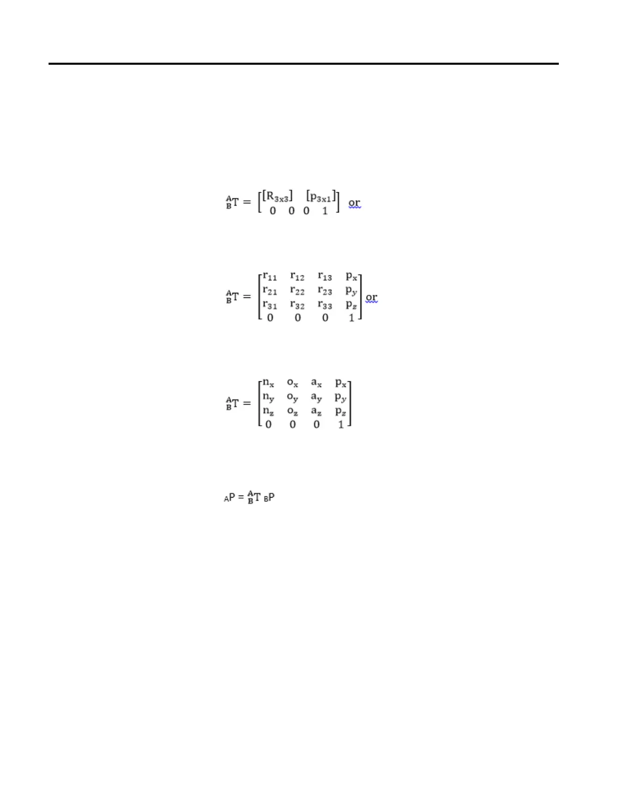 {A} to reference frame {B} using the following matrix equation.