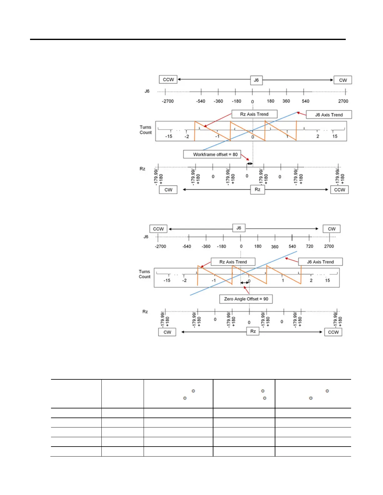 Table of Rz, turns counter and J6 values that are shown in the trends in figures