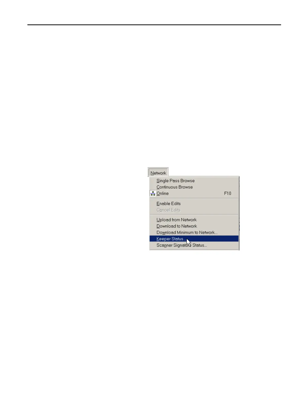 ControlNet access the Keeper Status from the Network menu.