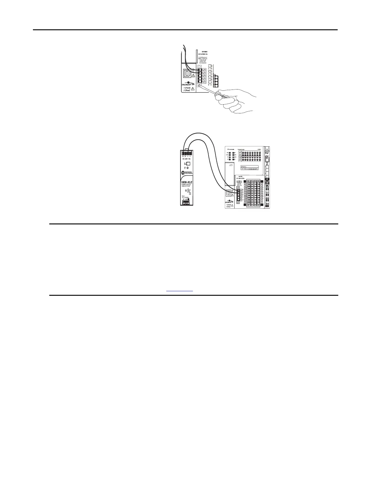 For more information on connecting power to the CompactLogix 5370 L1 control system, see the CompactLogix 5370