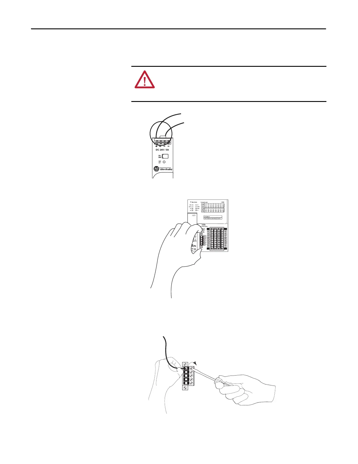 external 24V DC power source to the VDC+ terminal, that is, the top