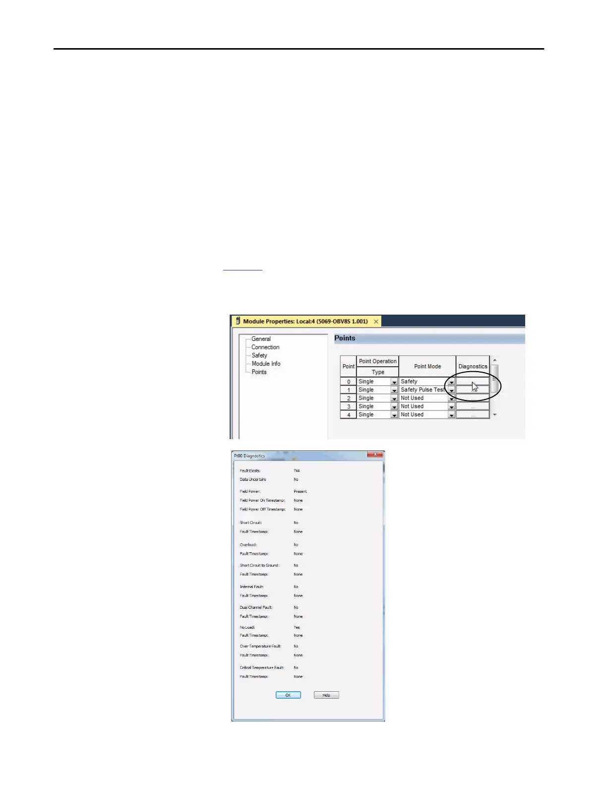 Figure 33 shows how to access output point diagnostics on the 5069-OBV8S