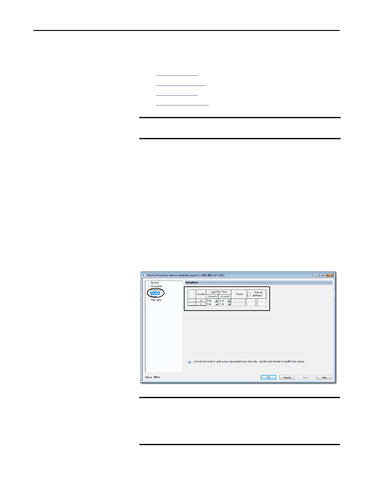 counter. You can also configure the counter Preset value and enable Rollover at