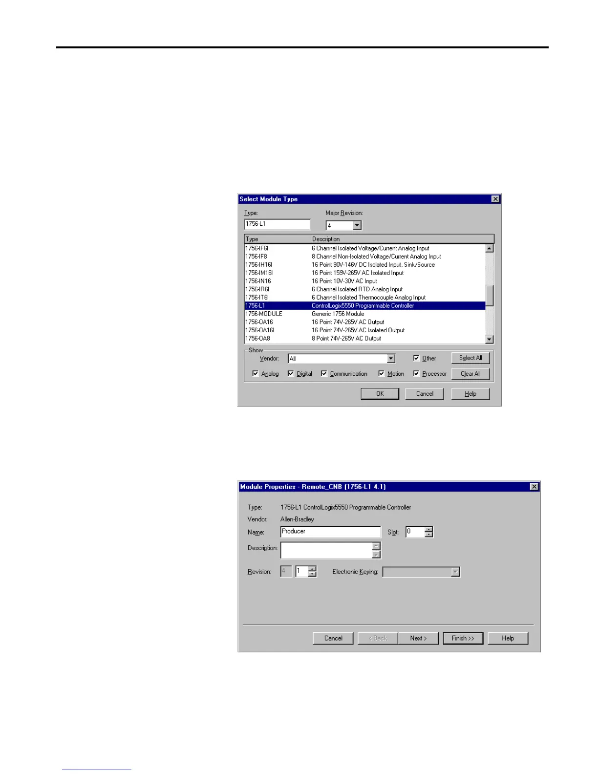 2. Select the 1756-L1 ControlLogix5550 Programmable Controller