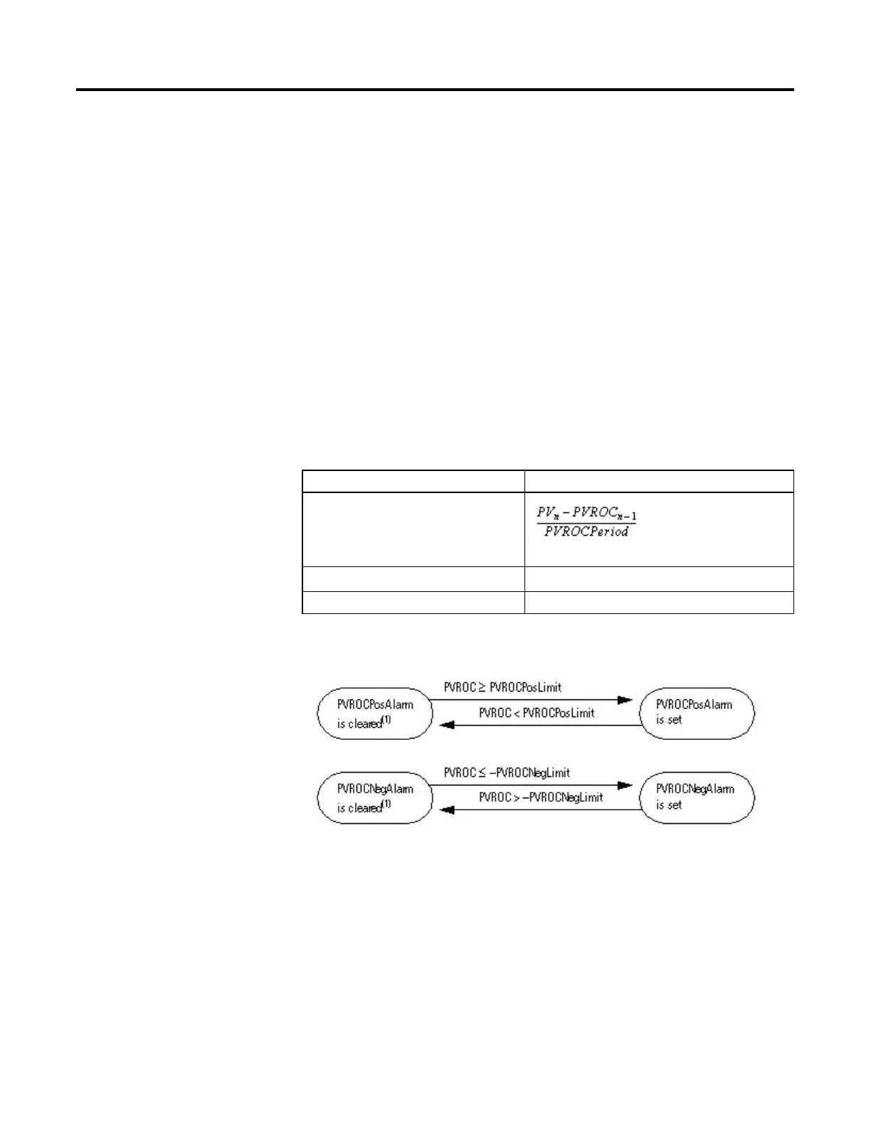 Once PVROC has been calculated, the PV ROC alarms are determined as follows: