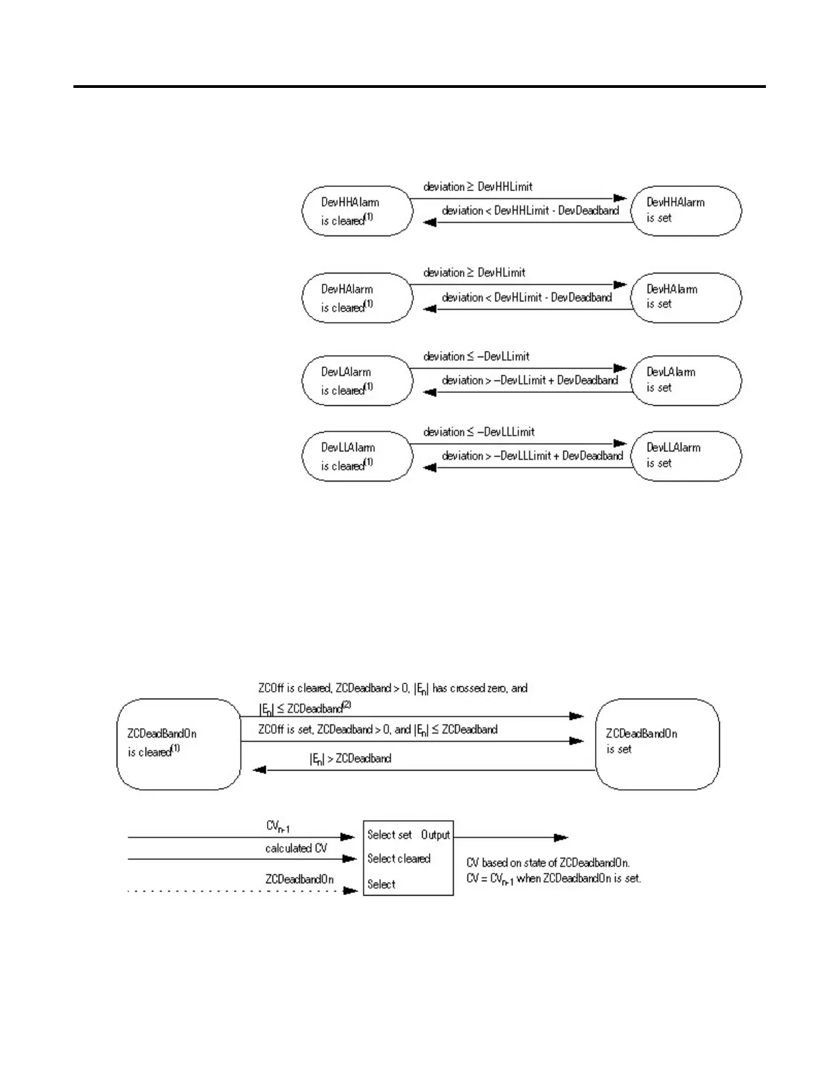 alarm limits and the deviation alarm limits plus or minus the deadband.