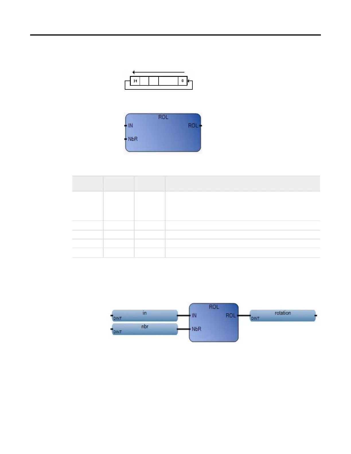ROL Output DINT Left rotated value. When NbR <= 0, no change occurs.