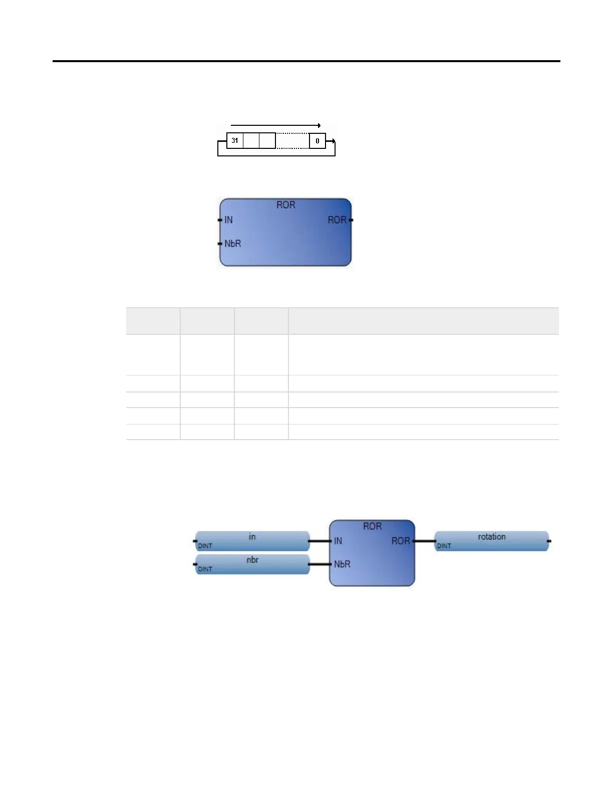 ROR Output DINT Right rotated value. There is no effect if NbR <= 0.