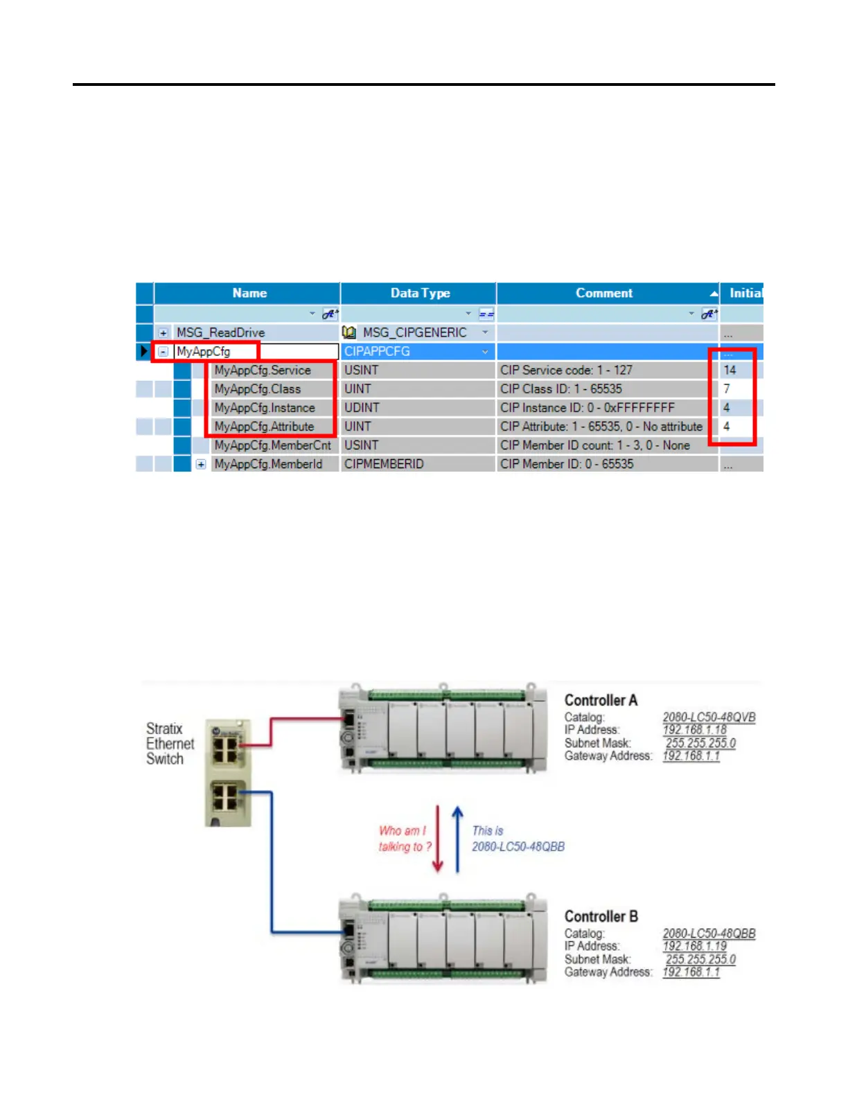 B's catalog information from Controller A using a MSG_CIPGENERIC function