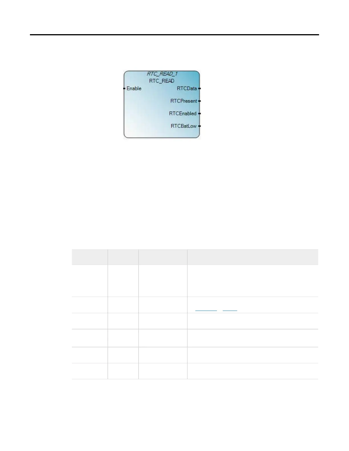 When Enable = FALSE, there is no read operation and output RTC data is invalid.