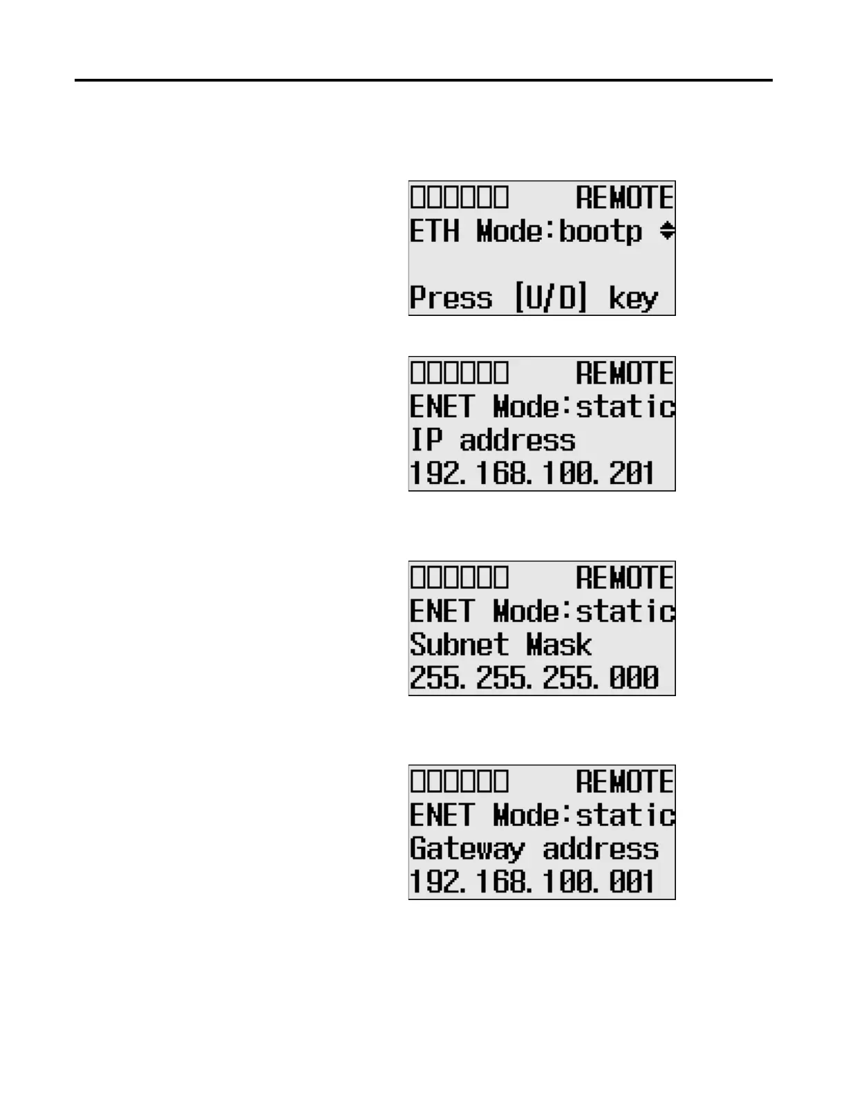 If you press the OK key at the static mode, the IP address flashes.