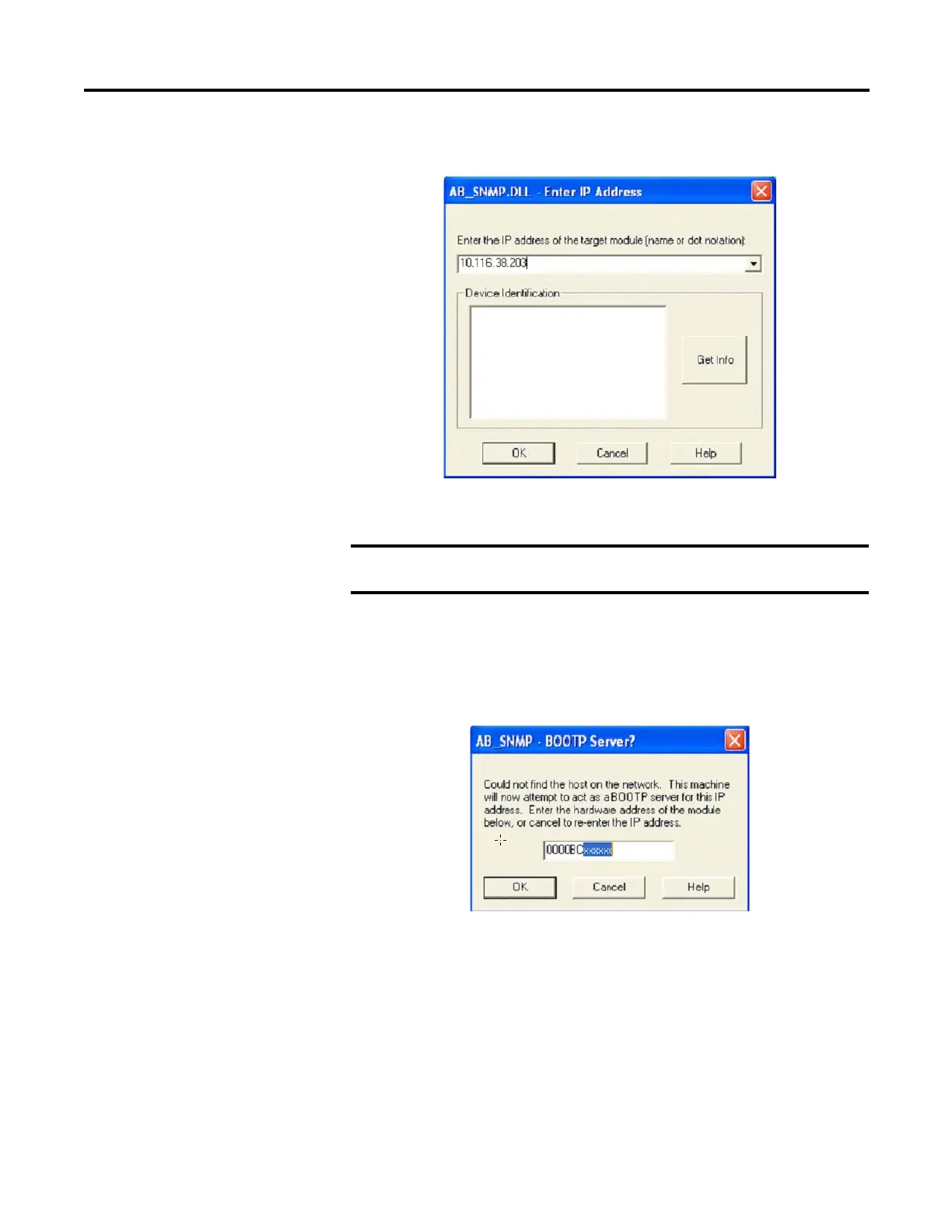 The AB_SNMP.DLL - Enter IP Address dialog box is displayed.