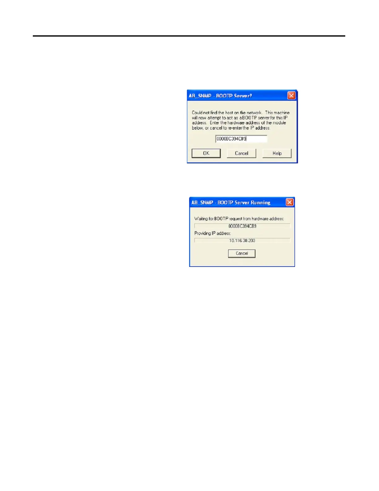 8. The AB_SNMP - BOOTP Server Running dialog box may take several