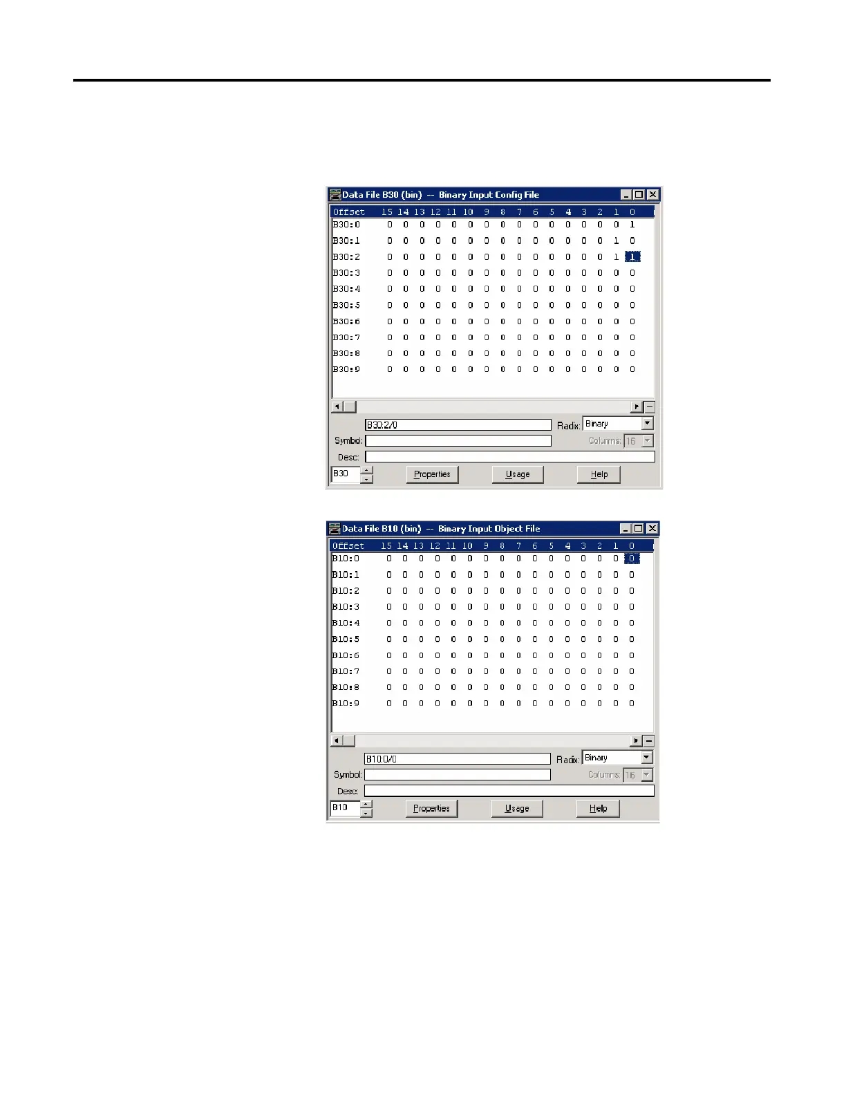 In the same manner, this 16-bit Analog Input Object File has bit 1/bit 0 of B36:0,