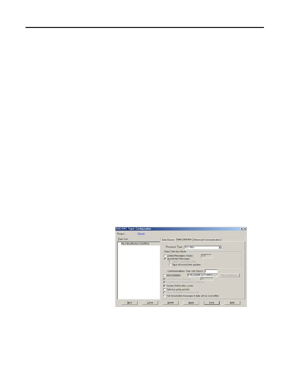 • Configure a new DDE/OPC topic in RSLinx for unsolicited data.