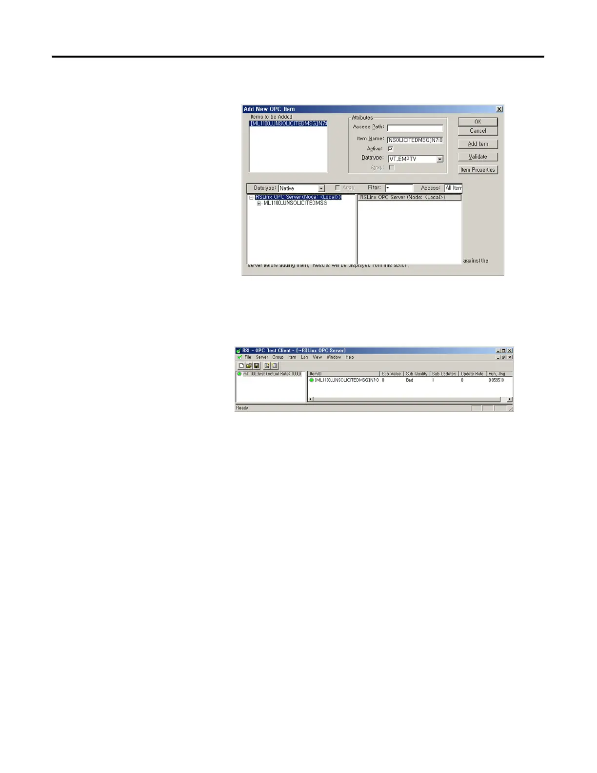 4. Note that the “Sub Quality” will be “Bad” until an unsolicited