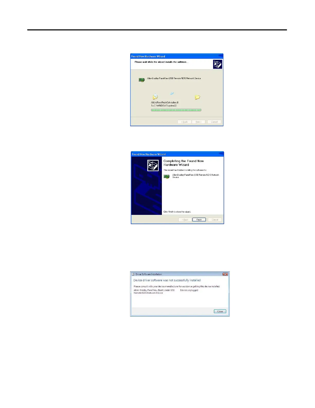 1. During the initial installation of the USB RNDIS boot loader driver, you