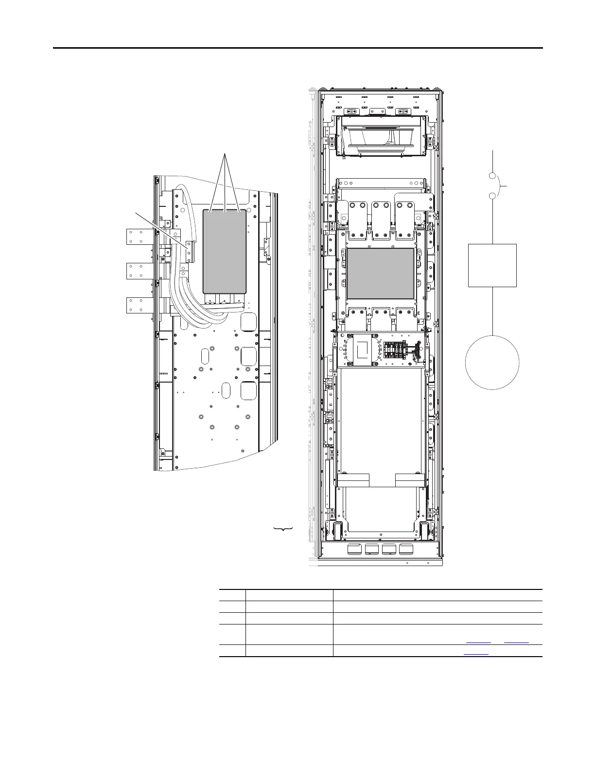➍ U/T1, V/T2, W/T3 Motor connection made at drive power bus. See page 156