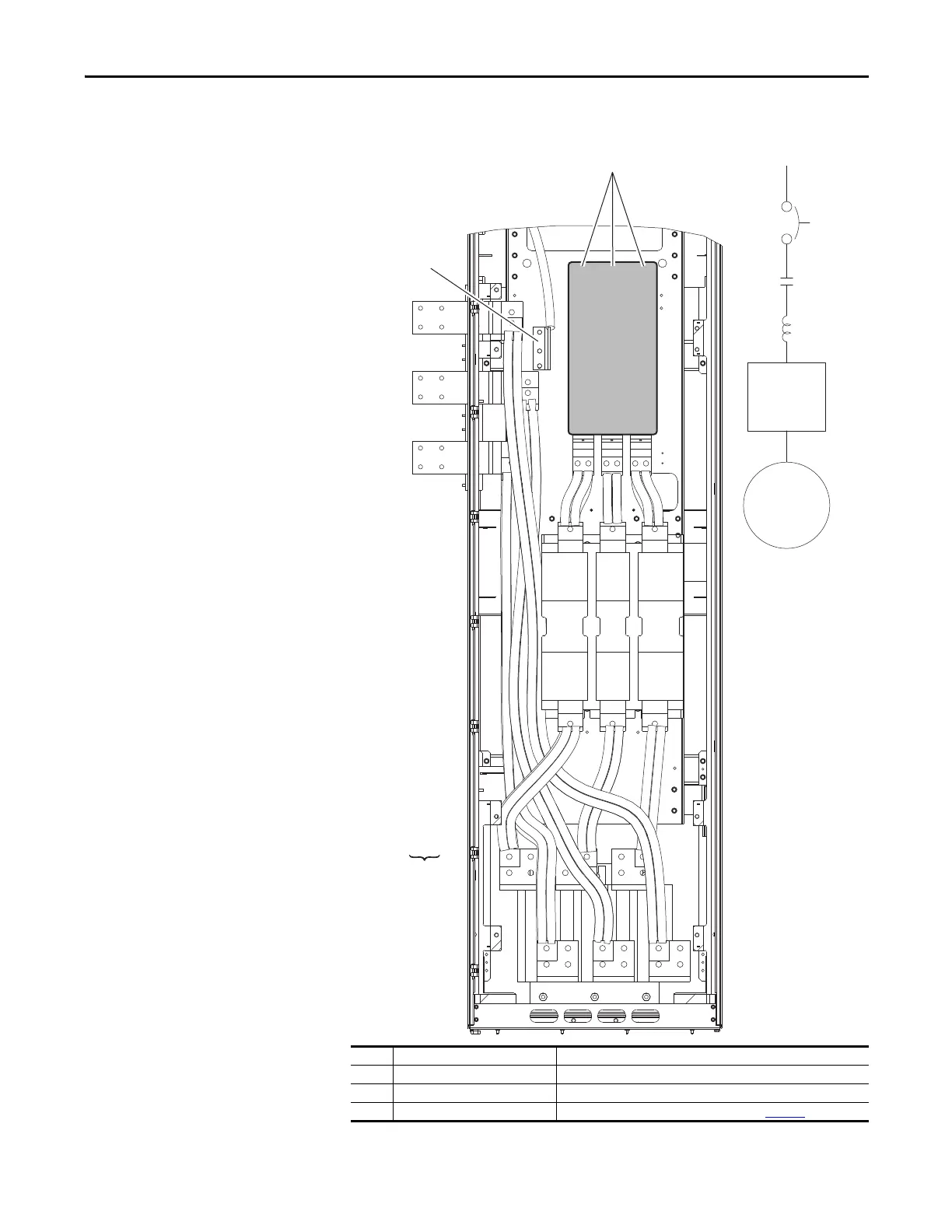 ➌ U/T1, V/T2, W/T3 Motor connection made at drive power bus. See page 156