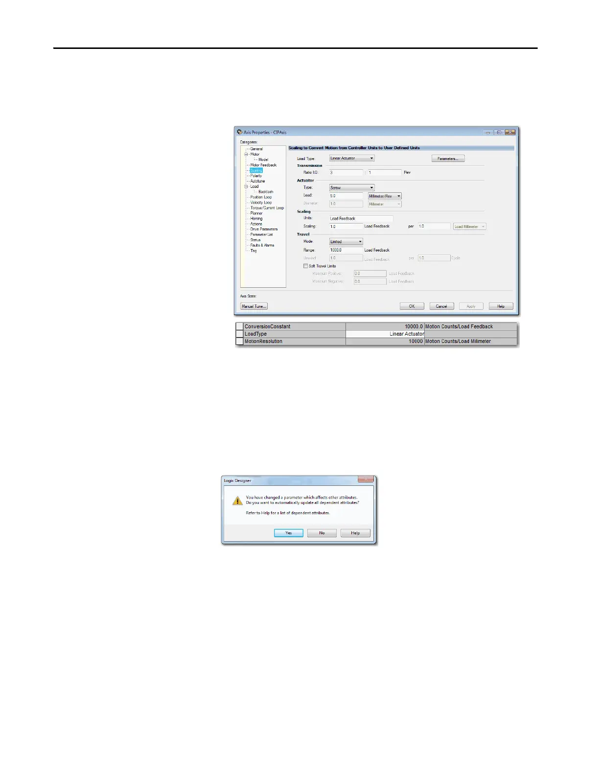 This dialog box gives you the choice to recalculate factory defaults for scaling