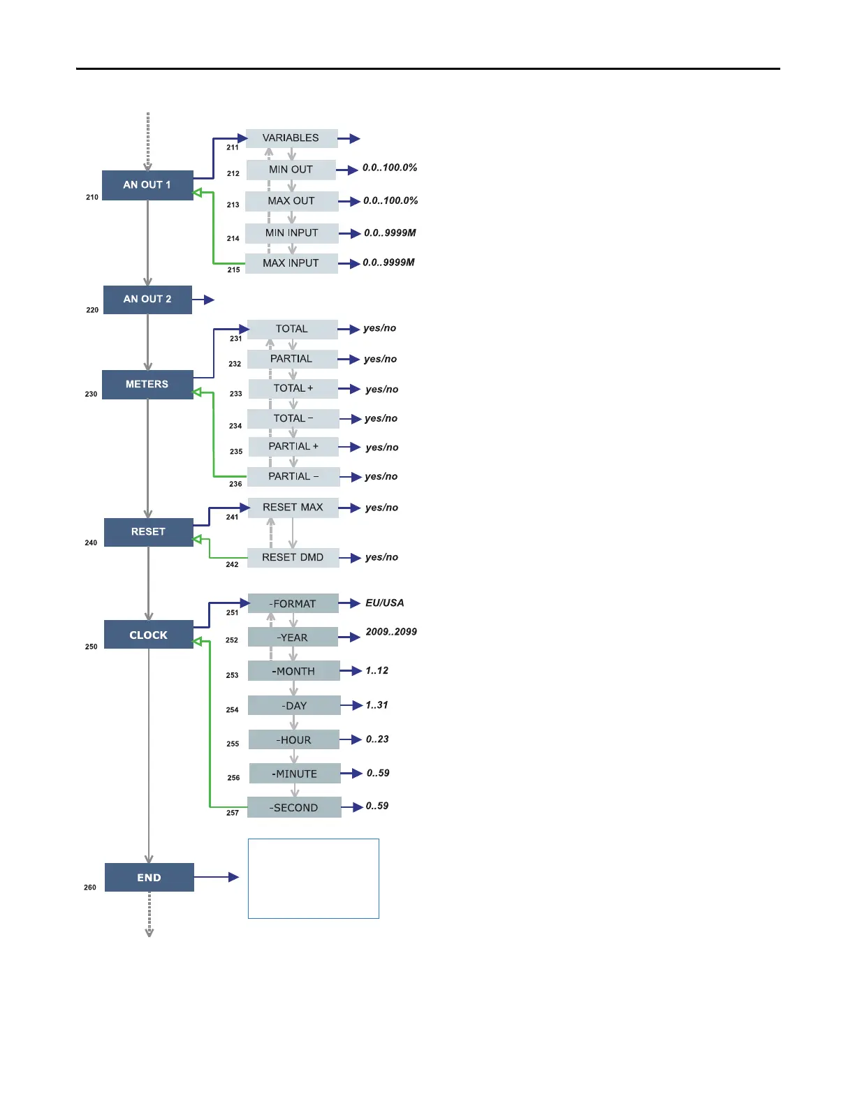• 240 RESET: Resets the MAX or dmd stored values.