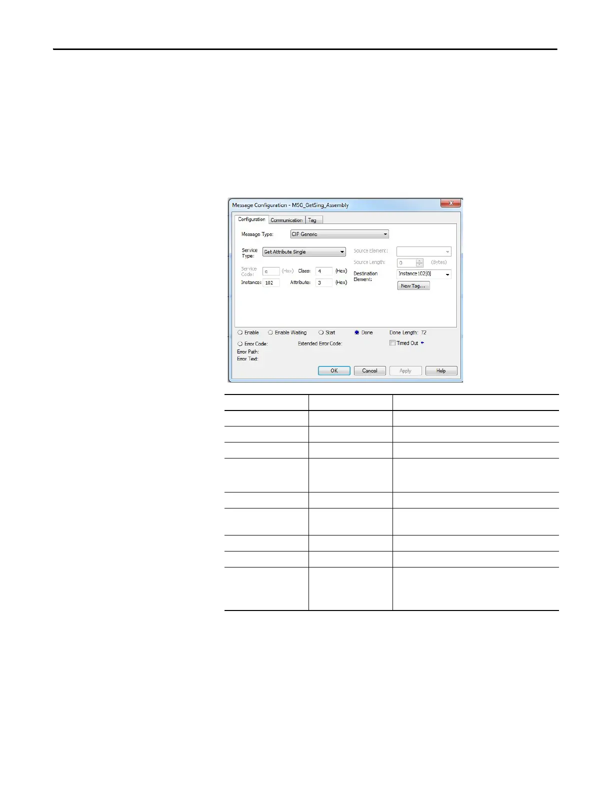 configuration for the Get Attribute Single Service type for the Logix Designer