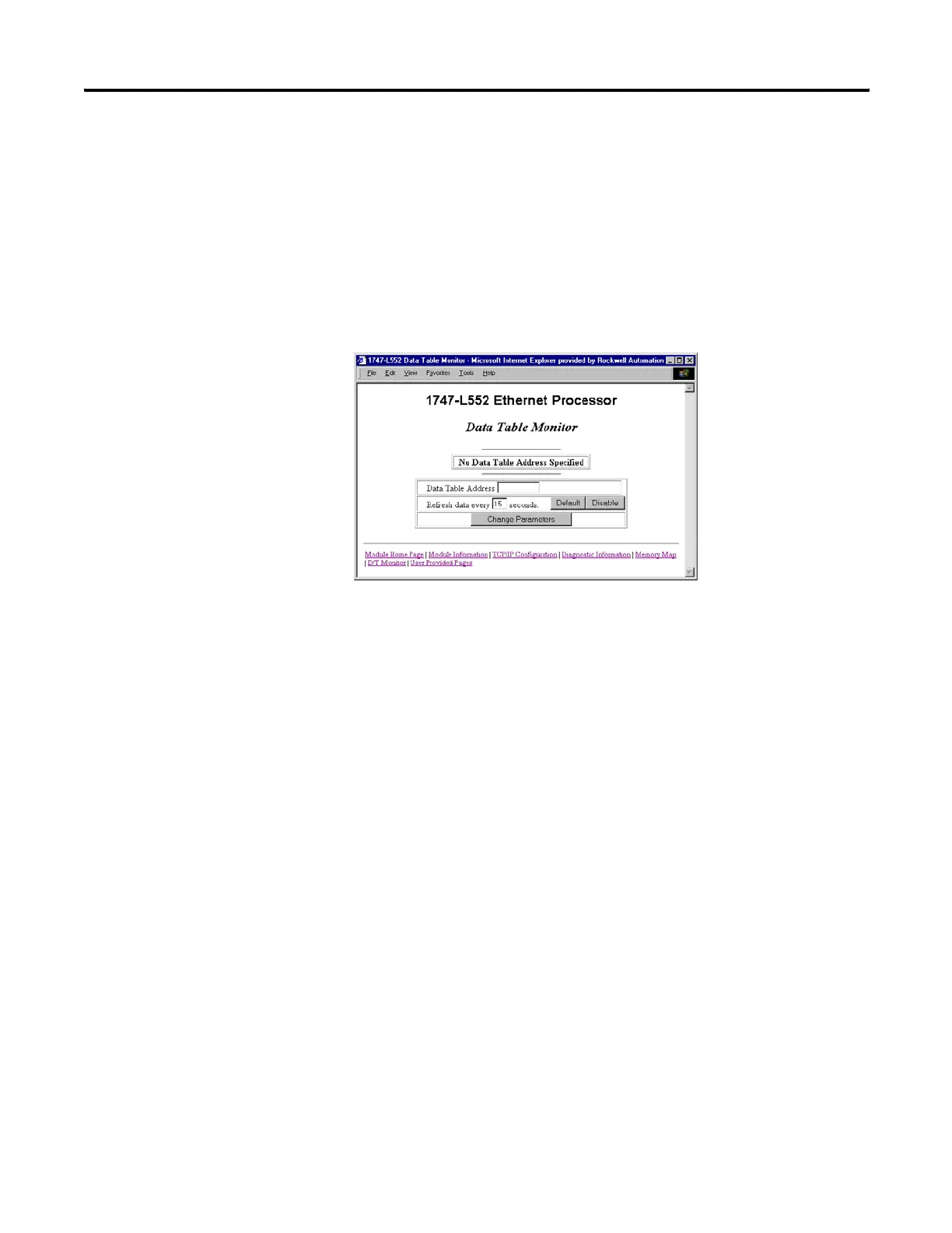 Figure 13.7 Default Data Table Monitor Screen